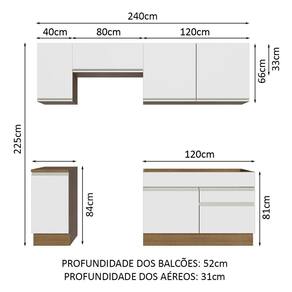 - 52 cm de profundidade nos balcões e 31 cm nos aéreos
