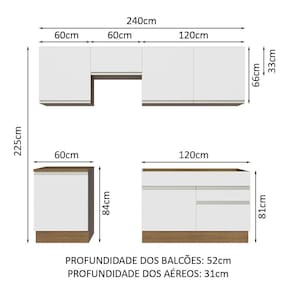 - 52 cm de profundidade nos balcões e 31 cm nos aéreos