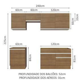 - 52 cm de profundidade nos balcões e 31 cm nos aéreos