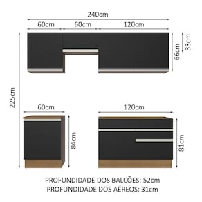 - 52 cm de profundidade nos balcões e 31 cm nos aéreos