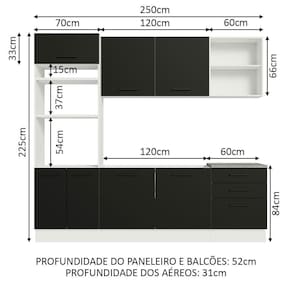 - 52 cm de profundidade nos balcões e na torre e 31 cm nos aéreos