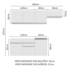 - 52 cm de profundidade nos balcões e 31 cm nos aéreos