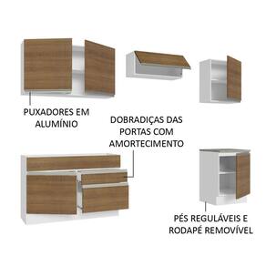 Com foco na qualidade e durabilidade, esse móvel apresenta puxadores de alumínio, portas com fechamento suave, gavetas com corrediças telescópicas, pés ajustáveis em PVC e rodapé em MDP, que pode ser facilmente removido.