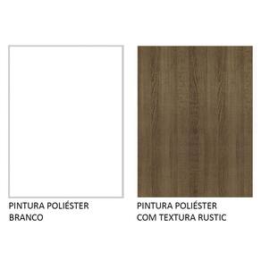 Por fim, o acabamento da estrutura é branco e as portas e frentes são em amadeirado Rustic. É feito em Poliéster Protetor ecológico, que consiste na aplicação de 7 camadas resistentes a álcool, água e calor.