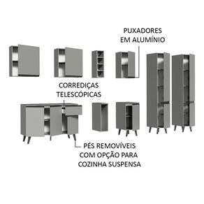 Itens inclusos: - Um (1) Aéreo de 120 cm com duas (2) portas - Um (1) Balcão de 120 cm com três (3) portas, uma (1) gaveta e tampo - Uma (1) Adega de 20 cm com quatro (4) nichos - Uma (1) Porta-Panos de 20 cm com duas hastes metálicas - Um (1) Aéreo de 40 cm com uma (1) porta - Um (1) Balcão de 40 cm com uma (1) porta - Dois (1) Paneleiros de 60 cm com duas (2) portas cada