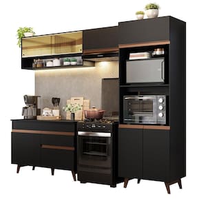 E para completar, você sabia que essa cozinha é totalmente modulada? Isso mesmo, você pode organizar as peças conforme seu espaço, criando praticamente uma cozinha planejada para o seu ambiente.