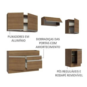 Com foco na qualidade e durabilidade, esse móvel apresenta puxadores de alumínio, portas com fechamento suave, gavetas com corrediças telescópicas, pés ajustáveis em PVC e rodapé em MDP, que pode ser facilmente removido.