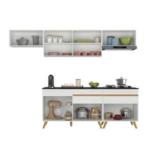 Armário De Cozinha Completa 260cm Veneza Multimóveis V3708 Branco/dourado Branco/dourado