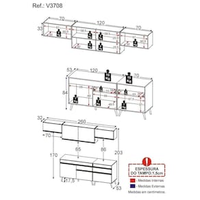 O Armário de Cozinha Completa 260cm Veneza Multimóveis V3708 tem um excelente custo benefício e um amplo espaço interno. Produzido em MDP com acabamento acetinado (cerca de 20% de brilho), que garante maior durabilidade e resistência, possui corrediças metálicas (mais leveza no manuseio), pés retrô em polipropileno, que deixam o ambiente mais estiloso, puxadores em ABS e tampo em MDP 15mm com pintura de alta resistência. Os módulos são individuais e você pode montar da maneira que se adaptar melhor ao seu ambiente. O balcão possui tampo removível (compatível com pia de 120 cm). Para deixar sua cozinha mais bonita e completa possui compartimento para utensílios mais altos e balcão para cooktop.Conteúdo da Embalagem:1 (um) armário aéreo 120cm1 (um) balcão com tampo 120cm1 (um) balcão com tampo 70 cm2 (dois) armários aéreos 70 cmDimensões do produto montado:Altura: 203cm | Largura: 260cm | Profundidade: 32cm (aéreos) - 53cm (balcão com tampo)*Você pode consultar as medidas internas na imagem técnica do produto.*As cores do produto podem sofrer variações de tonalidade de acordo com as configurações do seu dispositivo.Imagem meramente ilustrativa. Decoração e eletros não acompanham o produto.O produto será entregue desmontado e não disponibilizamos o serviço de montagem. Acabamento: Pintura Acetinada Texturizada | Cor: Preto/Dourado | Tonalidade: Preto | Material: MDP | Referência do Modelo: V3708 | Coleção: Veneza | Instruções de Cuidado: Limpar com pano seco para retirar o pó. Não utilizar lustra móveis e produtos químicos ou abrasivos à limpeza. | Sistema de Montagem: O produto acompanha manual de montagem e kit ferragem. O produto será entregue desmontado e não disponibilizamos o serviço de montagem. | Produto Composto por: 1 armário aéreo 120 cm, 1 balcão com tampo 120 cm, 2 armários aéreos 70 cm, 1 balcão com tampo 70 cm, manual de montagem e kit ferragem. | Altura Montado: 203 | Largura Montado: 260 | Profundidade Montado: 53 | Tamanho (L x A x P): 260 x 203 x 53 | Peso do Produto: 88 | Garantia do Fabricante: 3 | Fabricante: Multimóveis | Requer Montagem: Sim | Quantidade de Portas: 7 | Quantidade de Gavetas: 2 | Quantidade de Prateleiras: 2 | Quantidade de Puxadores: 9 | Quantidade de Pés: 9 | Porta com Vidro: Não | Corrediça: Metálica | Material do Puxador: ABS | Material dos Pés: Polipropileno | Acompanha Pia Inox: Não | Balcão 120 cm compatível para uso de pia: Sim | Tampo Incluso: Sim | Quantidade de Tampos: 2 | Material do Tampo: MDP | Espessura do Tampo: 1.5 | Com Prateleiras: Sim | Produto: Cozinha Completa | Tipo: Modular | Altura (cm): 203 cm | Largura (cm): 260 cm | Profundidade (cm): 53 cm | Estado de Origem: RS | Produto precisa de Montagem?: Sim, sugerimos a contratação do nosso serviço de montagem (para os CEPs em que o serviço está disponível) ou de algum profissional experiente de sua preferência | Ubicação do móvel: Não aplica | Altura do Produto com Embalagem: 43 | Largura do Produto com Embalagem: 65 | Comprimento do Produto com Embalagem: 125 | Peso do Produto com Embalagem: 88 | Nome do Produto no Fornecedor: Armário de Cozinha Completa 260cm Veneza Multimóveis V3708 Preto/Dourado | Descrição do Tamanho: (L x A X P): 260 x 203 x 53 cm | Tempo de Garantia: 3 meses | Destaque 1: MDP com acabamento acetinado: maior durabilidade e resistência. | Destaque 2: Balcão com tampo removível: pode ser utilizado com pia. | Destaque 3: Gavetas com corrediças metálicas: mais leveza no manuseio. | Destaque 4: Tamanho do Produto Montado (L x A X P): 260 x 203 x 53 cm | Destaque 5: Os módulos são individuais e você pode montar da maneira que se adaptar melhor ao seu ambiente. Garantia de 90 dias contra defeitos de fabricação. | Marca: Multimóveis | Acessórios incluídos: N/A Cor: Branco/Dourado