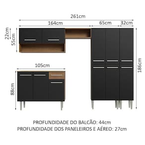 - 44 cm profundidade nos balcões e paneleiros e 27 cm nos aéreos