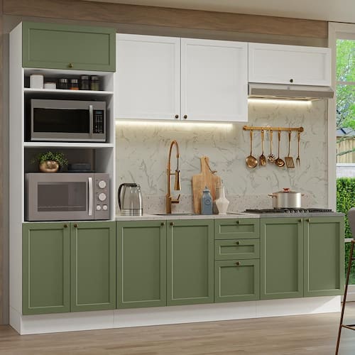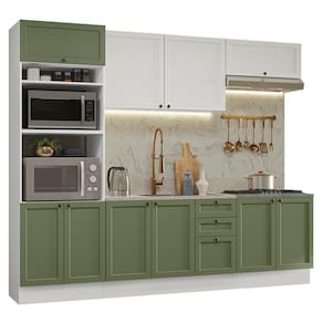 Armário de Cozinha Completa 270 cm Branco/Verde/Branco Vik Madesa 01