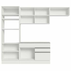 Os aéreos e balcões proporcionam ótimo espaço interno e externo e a torre quente conta com nichos especiais para forno e micro-ondas. Além disso, o balcão acompanha tampo, que pode ser recortado caso você deseje instalar uma pia de inox ou pedra.