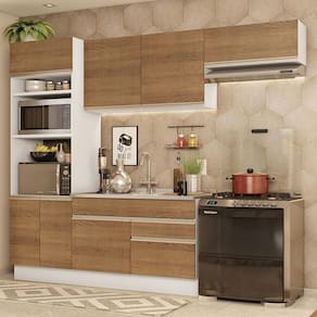 Esta cozinha é totalmente modulada, o que permite que você organize as peças conforme a necessidade do seu ambiente. Ou seja, é praticamente uma cozinha planejada para a sua casa! Não é demais?