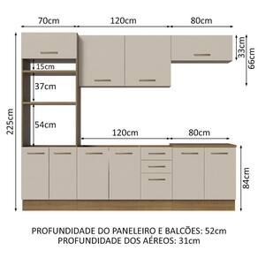 - 52 cm de profundidade nos módulos inferiores e 31 cm nos aéreos