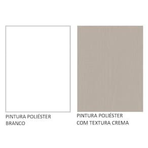O acabamento da estrutura é branco e o das portas e frentes é na coloração Crema. É feito em Pintura Poliéster ecológica, com sete camadas que protegem o móvel dos efeitos da água e do calor.