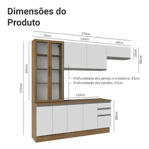 - 52 cm de profundidade nos balcões e 31 cm nos aéreos