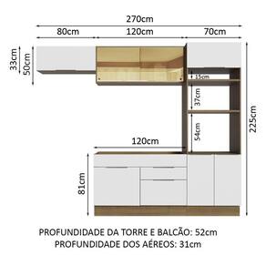 - 52 cm de profundidade no balcão e na torre e 31 cm nos aéreos