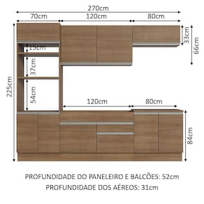 - 52 cm de profundidade no balcão e na torre e 31 cm nos aéreos