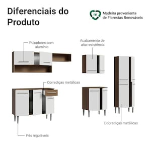 Qualidade acessível: Com excelente custo-benefício, fabricada com materiais duráveis, garantindo maior vida útil. Possui corrediças e dobradiças metálicas e pés ajustáveis em PVC.