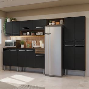 Com módulos avulsos que podem ser organizados de acordo com a necessidade do seu ambiente, ela oferece espaço amplo para guardar utensílios, louças, eletrodomésticos e acomodar a geladeira, tornando o dia a dia mais prático.