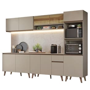 Produzido com materiais de qualidade, o balcão conta com dobradiças metálicas nas portas e puxadores em perfil de alumínio, discretos e resistentes. O tampo é removível, o que permite a instalação de cuba ou pedra. O acabamento é de alta resistência, garantindo durabilidade no uso diário.