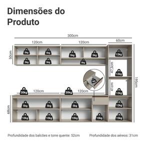 - 52 cm de profundidade nos balcões/torre quente e 31 cm nos aéreos