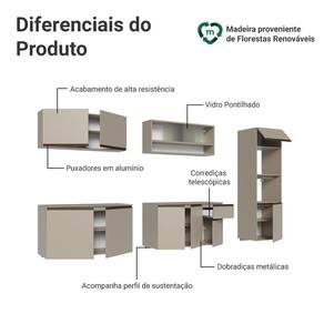 Produzido com materiais de qualidade, o balcão conta com dobradiças metálicas nas portas e puxadores em perfil de alumínio, discretos e resistentes. O tampo é removível, o que permite a instalação de cuba ou pedra. O acabamento é de alta resistência, garantindo durabilidade no uso diário.