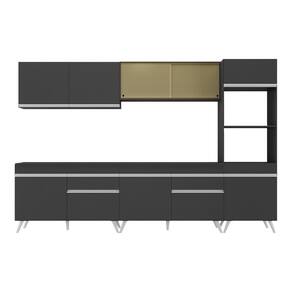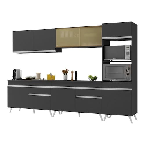 Armário De Cozinha Completa 302cm Veneza Multimóveis V3689 Preto/branco Preto/branco
