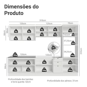 Profundidade: 52 cm (módulos inferiores) 31 cm (aéreos)