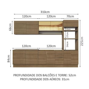 - 52 cm de profundidade nos balcões e na torre e 31 cm nos aéreos