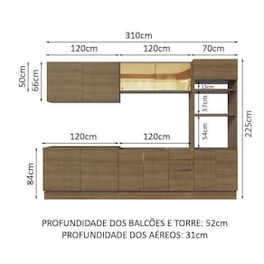 - 52 cm de profundidade nos balcões e na torre e 31 cm nos aéreos