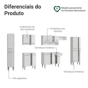 Qualidade acessível: Com excelente custo-benefício, fabricada com materiais duráveis, garantindo maior vida útil. Possui corrediças e dobradiças metálicas e pés ajustáveis em PVC.