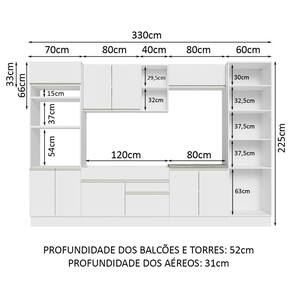 - 52 cm nos módulos inferiores e 31 cm nos aéreos