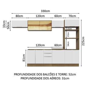- 52 cm de profundidade no balcão e nas torres e 31 cm nos aéreos