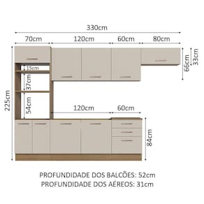 - 52 cm de profundidade nos balcões e na torre e 31 cm nos aéreos