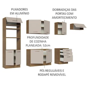 É um móvel de qualidade superior, sendo composta por puxadores com alça em alumínio, gavetas com corrediças telescópicas e portas com amortecimento para fechamento suave e pés reguláveis em PVC, com rodapé removível em MDP.