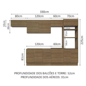 - 52 cm de profundidade no balcão e nas torres e 31 cm nos aéreos