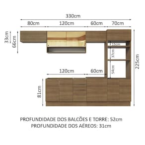 - 52 cm de profundidade no balcão e nas torres e 31 cm nos aéreos