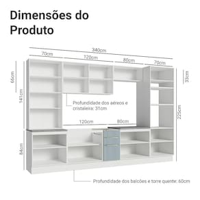 - 60 cm de profundidade nos balcões e na torre e 31 cm nos aéreos