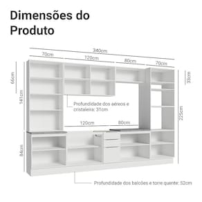 - 52 cm de profundidade nos balcões e na torre e 31 cm nos aéreos