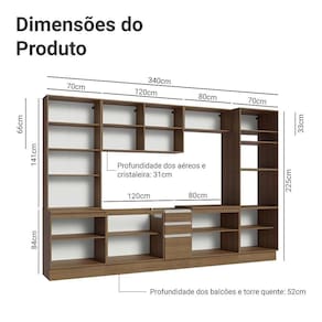 - 52 cm de profundidade nos balcões e na torre e 31 cm nos aéreos