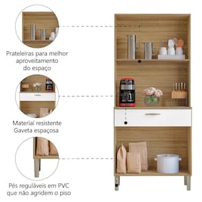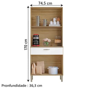 Confira as dimensões do produto e certifique-se de que estão adequadas aos elevadores, portas e corredores do local da entrega. Não fazemos a montagem, desmontagem do produto e/ou portas e janelas, transporte pela escada ou içamento pelo lado de fora do prédio. Não está incl no serviço de entrega o deslocamento até o interior do apartamento, com ou sem elevador, ou deslocamento em locais de difícil acesso como escadarias. MEDIDAS DO PRODUTO:: [ A ] = 170 cm [ L ] = 74,5 cm [ P ] = 36,3 cm (Inferior) / 26,1 cm (Superior) | PESO:: 27,35kg | ALTURA DOS PÉS:: 14,5cm | PESO SUPORTADO:: 10kg | GAVETA SUPORTA ATÉ:: 4kg | MODELO:: CRIS | MARCA:: Kits Paraná | ACABAMENTO:: Pintura UV Fosco | MATERIAL DA ESTRUTURA:: MDP | ESPESSURA DO MATERIAL:: 12mm e 15mm | PORTAS:: 4 | TIPO DE PORTA:: Bater | DOBRADIÇAS:: Metálicas | GAVETAS:: 1 | CORREDIÇAS:: Metálicas | POSSUI TAMPO:: Sim | MATERIAL DO TAMPO:: MDP | MATERIAL DOS PUXADORES:: Plástico | PÉS:: 4 | MATERIAL DOS PÉS:: Plástico | GARANTIA:: 3 Meses | AVISO:: A Esplanada Móveis se responsabiliza pela entrega dos produtos adquiridos até a porta de entrada ou portaria do endereço indicado, se a portaria do condomínio permitir, as entregas são efetuadas no piso térreo e é de responsabilidade do cliente | TIPO DE MOVEIS DE COZINHA: Armario Cor: Freijo/Bco