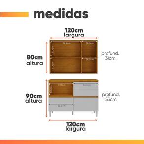 MEDIDAS AÉREO: A = 90 cm L = 120 cm P = 31 cm MEDIDAS BALCÃO: A = 90 cm L = 120 cm P = 53 cm ALTURA PÉS: A = 14,5 cm PRATELEIRAS SUPORTAM ATÉ: 5, 10 e 12 kg GAVETAS SUPORTAM ATÉ: 5 e 8 kg TAMPO SUPORTA ATÉ: 35 kg PESO: 88,92 kg MODELO: Armário De Cozinha Completa 4 Portas 4 Gavetas Lais MARCA: Itatiaia COR: Madeirado/Fendi MATERIAL: MDF ESPESSURA DO MATERIAL: 15 mm PINTURA: UV de alta qualidade ACABAMENTO: Fosco PORTAS: 4 TIPO DE PORTA: Bater / Basculantes DOBRADIÇAS: Slow Motion (35mm) PISTÃO A GÁS: Sim PRATELEIRAS: 2 GAVETAS: 4 CORREDIÇAS: Telescópicas QUANTIDADE DE PUXADORES: 3 TIPO DE PUXADORES: Slim / Cava MATERIAL DOS PUXADORES: Alumínio MATERIAL DO TAMPO: MDP ESPESSURA DO TAMPO: 25 mm PÉS: 5 (reguláveis) MATERIAL DOS PÉS: Plástico SISTEMA DE MONTAGEM: Parafusos e cavilhas DIFERENCIAIS: Design elegante e moderno / Gavetas com corrediças telescópicas / Amplo espaço para melhor armazenamento / Dobradiças Slow motion / Pés reguláveis / Balcão com possivel adaptação para cooktop. OBSERVAÇÃO: Tampo do balcão adaptável para cooktop não possui recorte. ITENS INCLUSOS: 1 aéreo vidro reflecta, 1 balcão 1,20m, 1 manual de montagem, 1 kit parafusos. INSTRUÇÕES E CUIDADOS: Para maior durabilidade, recomendável que a limpeza dos móveis seja feita com pano limpo e seco. Não usar produtos químicos ou abrasivos GARANTIA: 3 meses pelo fabricante.