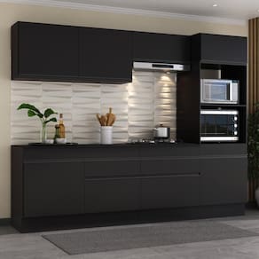 Conteúdo da Embalagem: 1 (um) Armário Aéreo 120cm 1 (um) Balcão com Tampo 120cm 1 (um) Armário Aéreo com Porta Basculante 70cm 1 (um) Balcão com Tampo 70cm 1 (um) Armário para Forno e Micro-Ondas 62cm