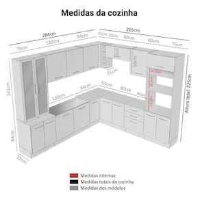 - 52 cm de profundidade nos balcões e na torre e 31 cm nos aéreos e cristaleira