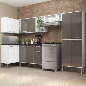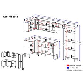 Conteúdo da Embalagem: 1 (um) nicho horizontal 1 (um) armário aéreo de 105 cm 1 (um) paneleiro duplo 1 (um) balcão com tampo de 105 cm 1 (um) balcão com tampo de canto 1 (um) armário aéreo de canto