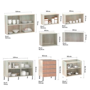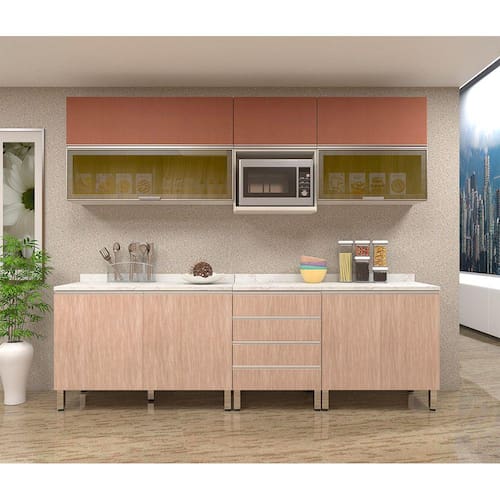 Armário de Cozinha Completa 8 Peças com Tampo Legno Crema com Cumaru e Gaia Lis Luciane Móveis