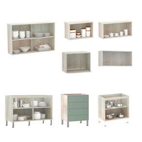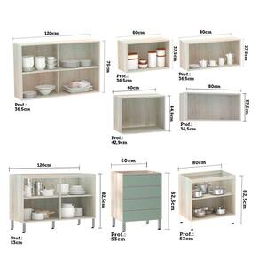 Armário de Cozinha Completa 8 Peças com Tampo Legno Crema com Verde Jade Lis Luciane Móveis