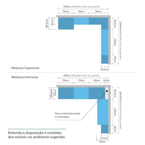 ? 1 Armário de Canto Reto Conjugado 2 Portas Safira Luciane Móveis
