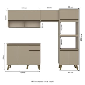 Composta por dois módulos versáteis, conta com dois armários aéreos e nicho incluso, um balcão de 105cm com gaveteiro e uma torre quente com espaço para dois fornos. Equipada com puxadores e pés em ABS, dobradiças e corrediças metálicas e elaborada em MDP de alta qualidade, essa cozinha oferece durabilidade, resistência e sofisticação em cada detalhe!